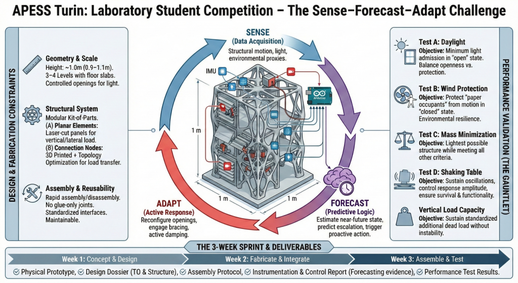 If you are a passionate and motivated Ph.D. Student or a Postdoctoral Researcher, join us at APESS 2026 in Politecnico di Torino University Italy (16th worldwide in the Interdisciplinary Science Rankings, 2025 QS Ranking 241 – Top 16% globally, 39th by subject in Civil and Structural Engineering) to learn side-by-side with world leaders in smart structures and create connections and networking with them and your colleagues worldwide for your future career. Here, you can both increase your scientific background and gain industrial exposure with the opportunity to develop hands-on skills in this project competition.